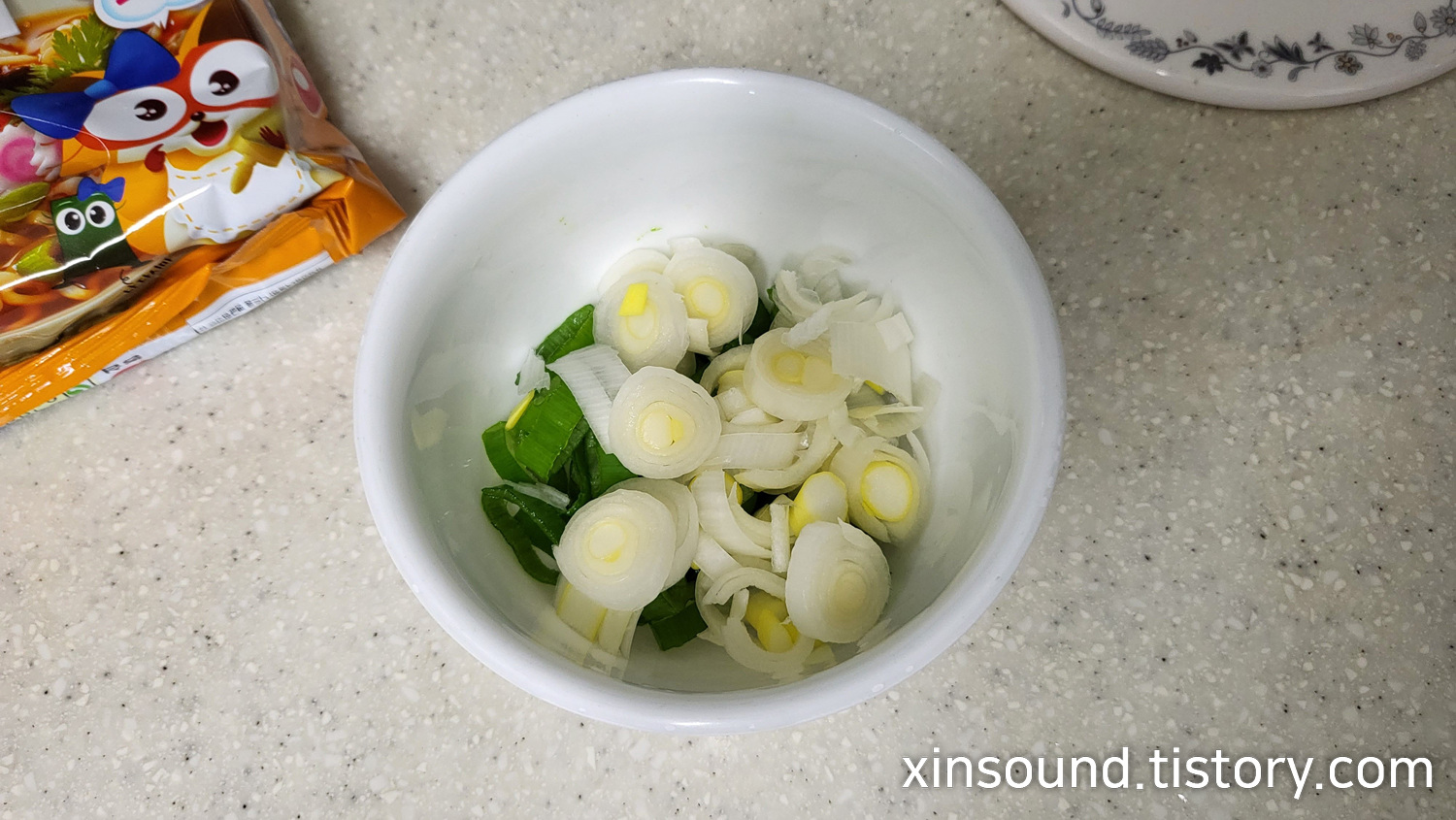 11. 완성된 너구리 대파라면을 그릇에 담아 대표 사진을 한컷 촬영해 보았구요! 보이는 비주얼에서는 일반 너구리 라면과 크게 다를 건 없지만 향에 있어서는 볶은 대파와 마늘 향이 더해져 더 진하면서 먹음직스러움이 느껴졌네요!
